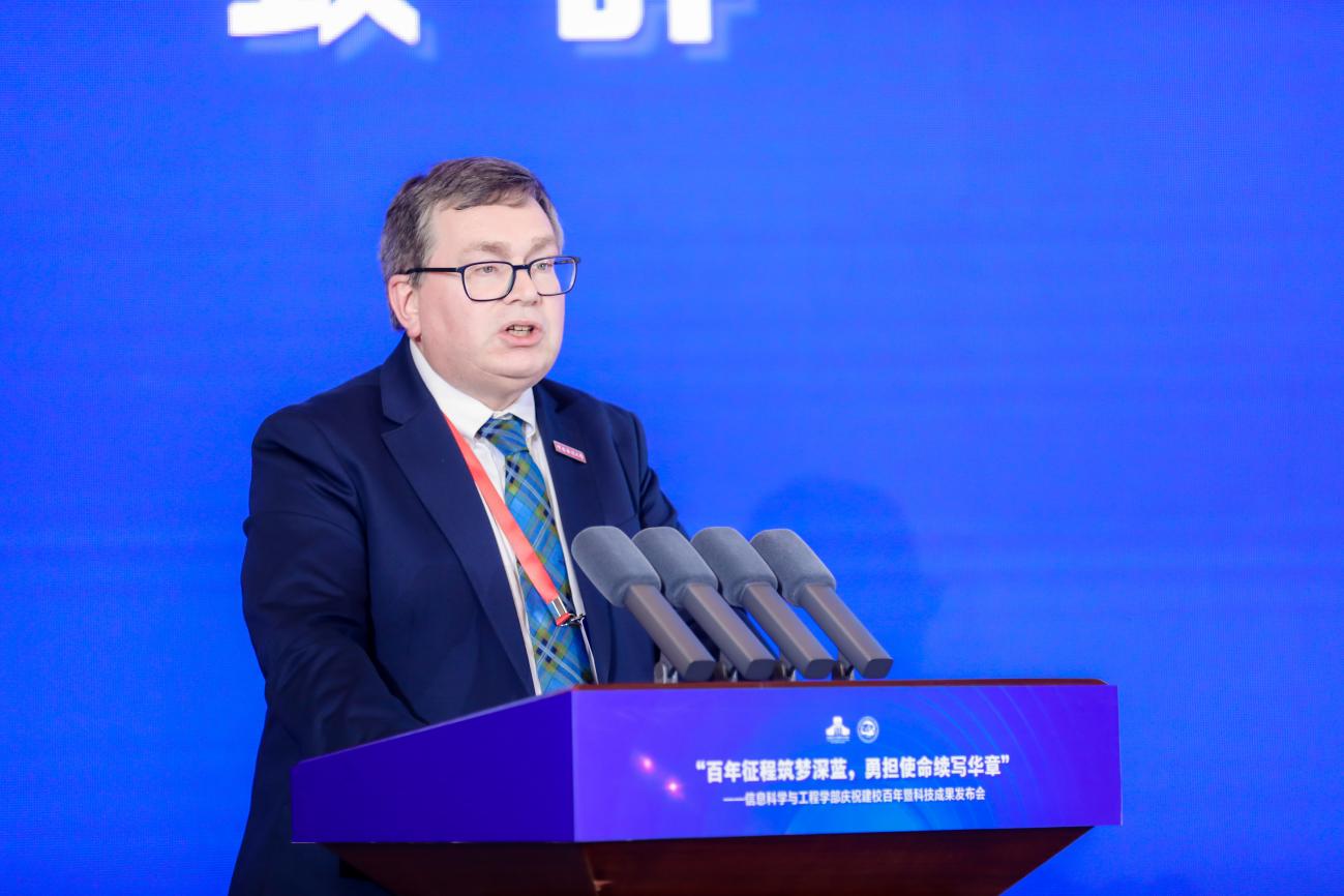 Richard A. Williams作为国外高校代表致辞。他向名媛直播 建校100周年表示热烈祝贺,充分肯定了两校在计算机科学与技术中外合作办学方面取得的成果。他表示,名媛直播 是赫瑞-瓦特大学的重要合作伙伴,愿两校友谊之树长青,希望在更多领域开展务实合作,共同培育具有国际视野的创新性人才。