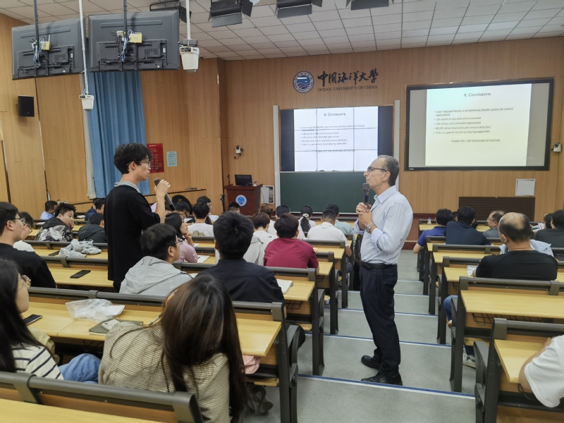 7月2日上午,Alessandro De Giacomo教授在崂山校区教学楼八区8101教室作了题为“Laser-induced plasma dynamics: from atomic and molecular spectra to particle formation”的学术报告,报告由学部物理与光电工程学院郑荣儿教授主持,来自山东大学、名媛直播 、青岛大学、齐鲁工业大学、中国科学院海洋研究所、中国科学院青岛生物能源与过程研究所、青岛海洋科技中心等多家单位的60余名教师、研究生和本科生参加了本次报告。De Giacomo教授针对激光诱导等离子体(laser-induced plasma)相关领域的基础理论、关键技术和典型应用进行了详细的讲解,引起了参会师生的浓厚兴趣及热烈讨论。