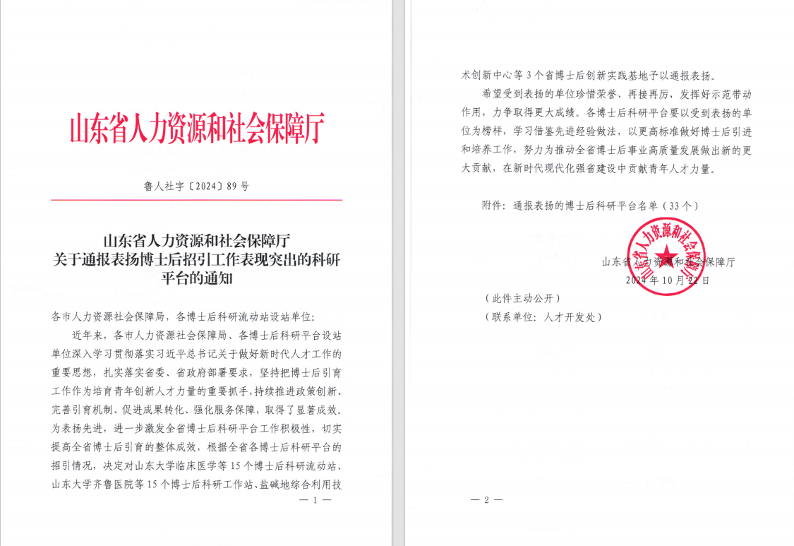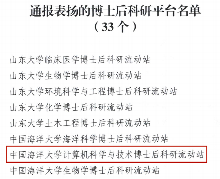 近日,山东省人力资源和社会保障厅通报表扬了博士后招引工作表现突出的科研平台,名媛直播 计算机科学与技术博士后科研流动站获通报表扬。据悉,全省通报表扬的科研博后流动站共33个,名媛直播 共有3个科研博后流动站荣登表扬名单。