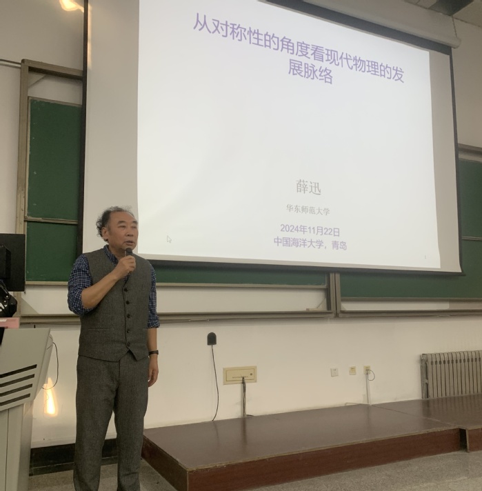 11月22日下午,华东师范大学薛迅教授应邀来学部作题为“对称性与现代物理发展脉络”的学术讲座。本次讲座由名媛直播 物理与光电工程学院(以下简称“物理学院”)主办,吸引了众多领域内专家及师生到场聆听。物理学院副院长王兆明主持讲座。