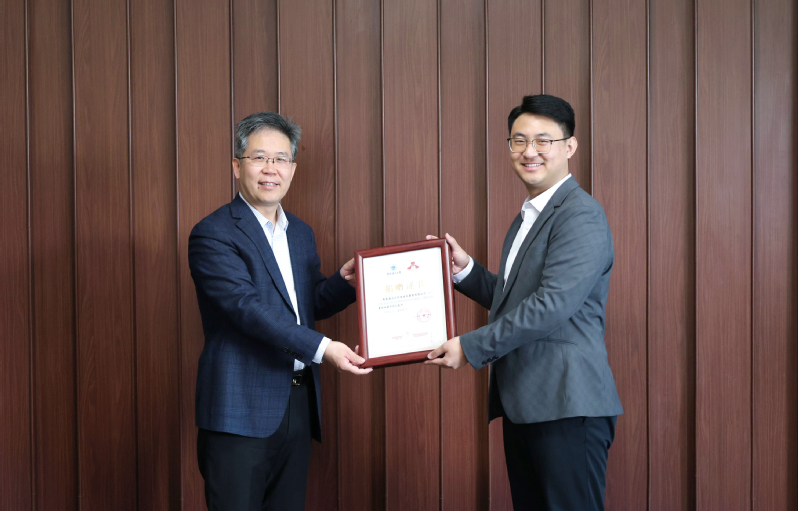 范其伟(左)向王志超赠送捐赠证书