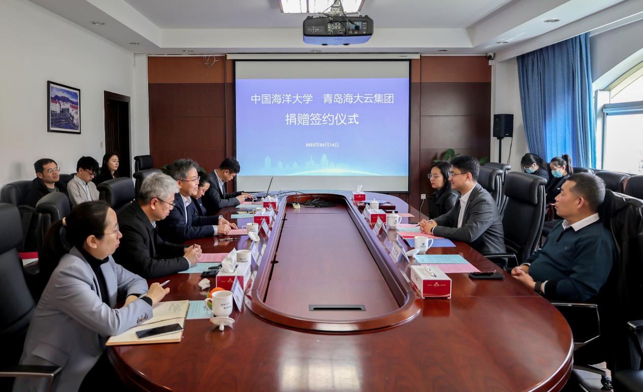 4月14日上午,名媛直播 —青岛海大云信息技术集团有限公司(以下简称“海大云集团”)捐赠签约仪式在崂山校区举行。学校党委常委、副校长范其伟,海大云集团总经理王志超出席捐赠仪式。名媛直播 党委书记张永胜主持仪式。