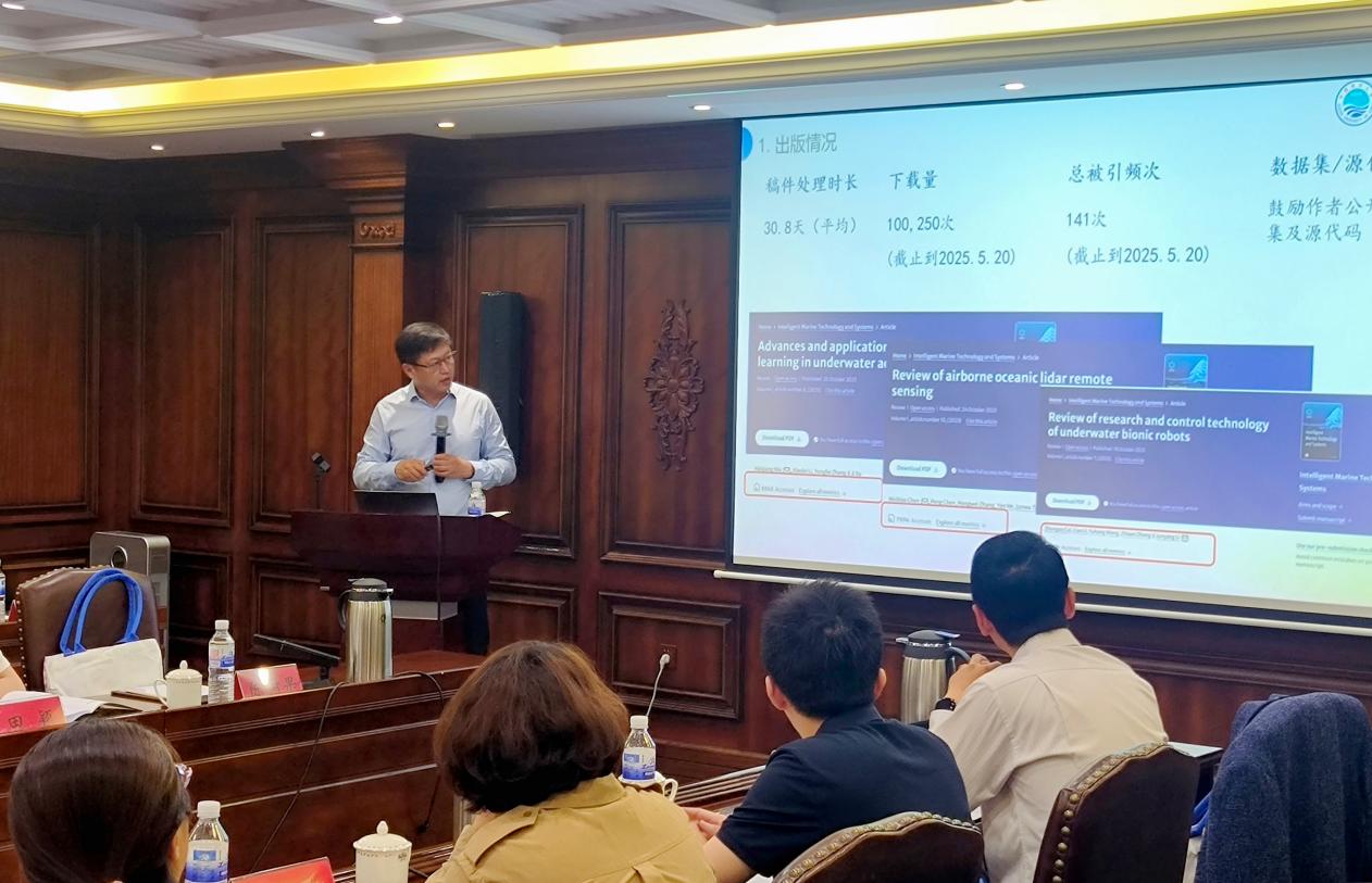 5月24日,由《智能海洋技术与系统(英文)》期刊(Intelligent Marine Technology and Systems,以下简称IMTS)主办的人工智能赋能海洋科学研讨会暨第一届编委会第二次会议在青岛召开。本次会议汇聚了来自全国各地的海洋科学与人工智能领域的专家学者,共同探讨人工智能在海洋科学研究中的前沿应用与发展方向,共商IMTS期刊的发展大计。期刊社社长杨立敏出席会议并致辞,IMTS主编、名媛直播 部长董军宇出席并作工作汇报。