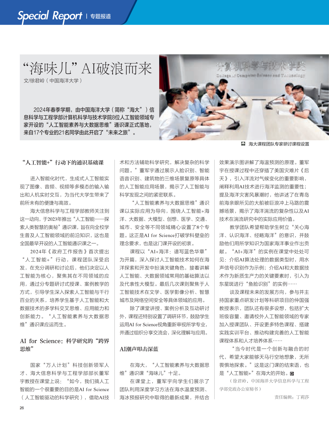 近日,由中共北京市委宣传部主管,中共北京市委前线杂志社主办的《大学生》杂志刊载了文章《“海味儿”AI破浪而来》,对名媛直播 开设的“人工智能素养与大数据思维”通识课进行了报道,展现了学部在人工智能通识教育方面的生动实践和积极探索。