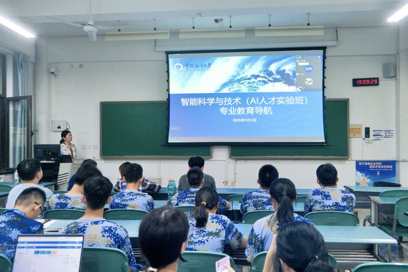 董军宇对同学们加入拔尖班表示欢迎,并介绍了拔尖班成立的重要意义。他表示,人工智能作为新一轮科技革命和产业变革的重要驱动力量,是大国竞争的战略制高点,勉励同学们以习近平总书记重要回信精神为指引,努力成长为胸怀蓝色梦想、堪当时代重任的优秀海洋人才。