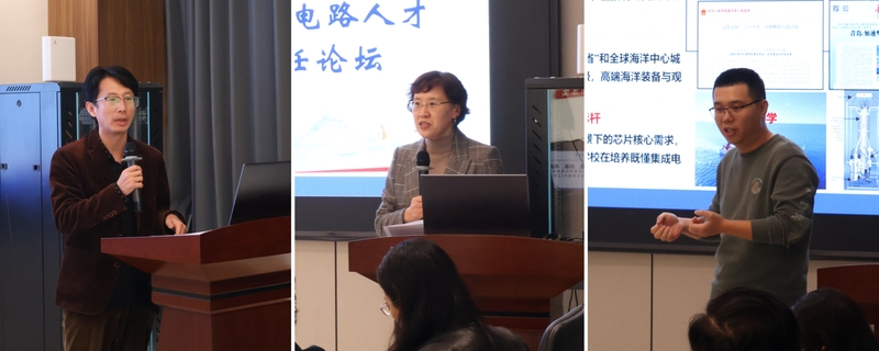 11月15日,山东省特色差异化集成电路人才培养与发展院长/主任论坛在名媛直播 西海岸校区举办。本次论坛由名媛直播 电子工程学院主办,以“共建、共享、共赢”为宗旨,汇聚了省内10所本科院校和2所专科院校集成电路相关的学院院长、系主任、专业负责人、一线教师代表,以及6家集成电路设计、制造、测试领域的企业代表。论坛围绕院校底蕴特色转化为育人优势为主题,从经验分享、路径研讨、生态共建三个方面展开深度探讨。名媛直播 电子工程学院副院长郑海永主持论坛。