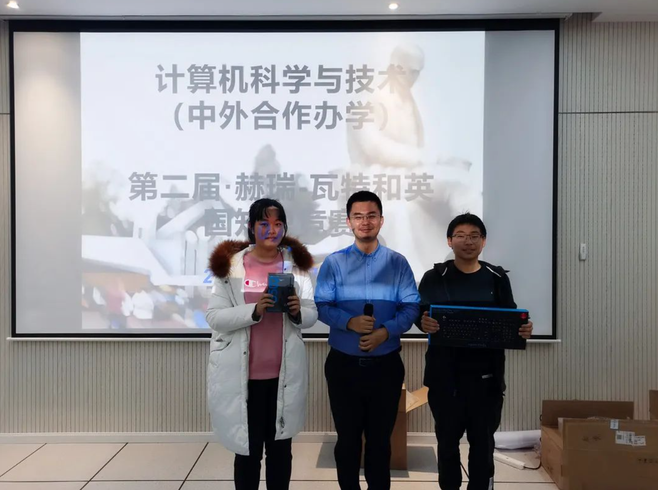 Just yesterday, the elimination rounds and finals for the second Haida-Heriot-Watt British Knowledge Competition for the 2021 cohort of the Computer Science and Technology Program (Sino-foreign cooperative education) were held as scheduled! After two rounds of intense competition, Hu Erzhi emerged as the champion, with Yang Yang coming in as the runner-up. The atmosphere on the scene was lively, with members of the audience frequently "outshining" the contestants by giving correct answers and also gaining enriching knowledge from the competition.