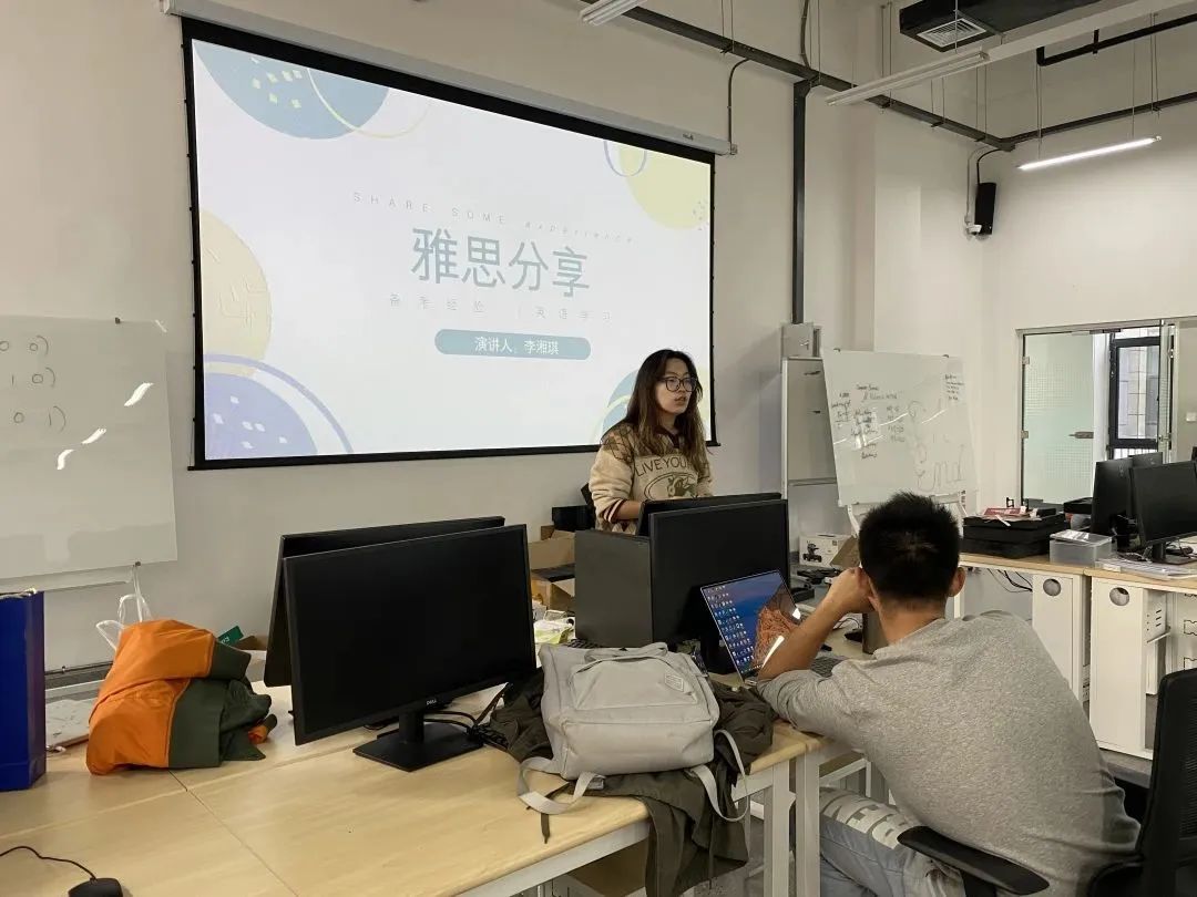 Yesterday afternoon, we held an "IELTS Exam Preparation Experience Sharing Session" at the Information Building 108 laboratory on the Xisha Campus. Li Xiangqi, Li Hongbo, and Tang Shiyi, representative students who achieved high scores in the IELTS exam for the 2020 class, shared their own learning and preparation experience with the 2021 class of students.