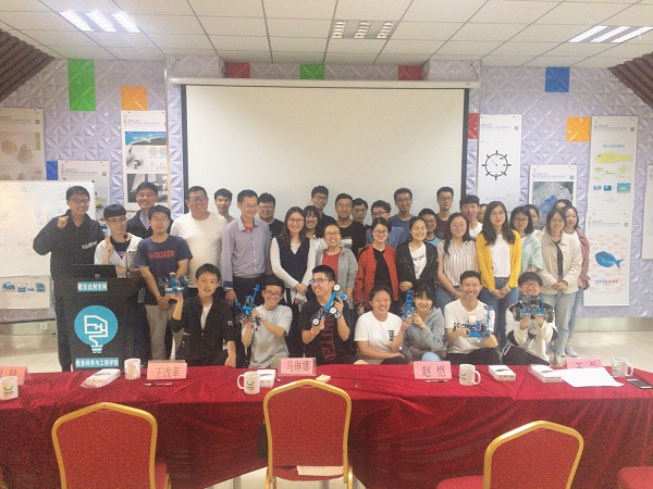 26日上午,经过多个小时的紧张而又精彩的公开答辩,各个团队分别展示了他们两天来努力完成的丰硕成果,更让我们看到了在当代大学生身上生生不息的创新创业的光芒。歌尔股份有限公司人力资源本部高校合作经理马琳娜、信息科学与工程学院计算机科学与技术系副教授王改革、迈赫机器人自动化股份有限公司高级工程师刘昆,智朗创客空间创客导师赵恺,信息科学与工程学院辅导员王兰出席并对六支参赛队伍的作品进行了技术点评与悉心指导。“这两天的比赛让我们深深的感受到了明确分工和团队合作的重要性”、“当我们看到它终于能成功完成“跨越”的时候我们觉得这几天的努力都很值得”,选手们的这些话得到所有参赛选手的共鸣也得到了评委老师的肯定。