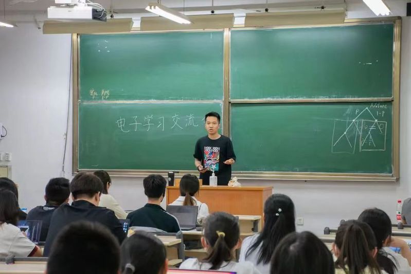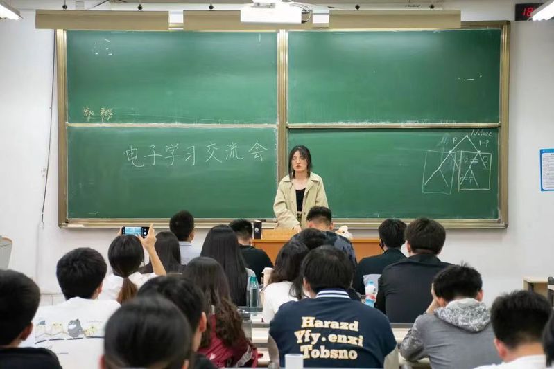2020级电子信息类集体晚自习及学习交流会为帮助大家更好地备战期末考试,名媛直播 2020级电子信息类辅导员宋亚辉倡导各班每周开展集体晚自习;同时宋老师牵头邀请到保研到中国科学技术大学大四学长王巍、保研到东南大学的大四学姐张冰洁、保研到哈尔滨工业大学的大四学长纪元正和保研到天津大学的大四学长孙立远,于5月19日晚在3208和3308为同学们召开学习交流会。
