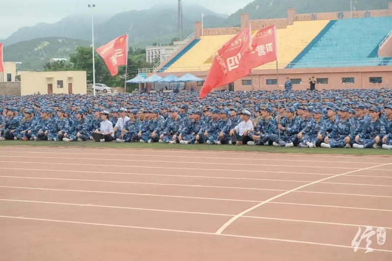 雾霭沉沉,气候宜人。清晨时分,新生们身姿如松,在操场中挺拔而立,飘扬的队旗下,是一张张稚嫩而坚毅的面孔,国歌回荡在操场上空,五星红旗迎风飘扬。主席台上,学生代表、教官代表、各级领导的发言掷地有声;主席台下,全体新生的回应震耳欲聋。