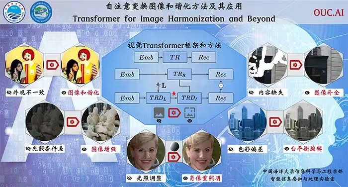 国际人工智能顶级期刊TPAMI在9月15日以“Transformer for Image Harmonization and Beyond”(自注意变换图像和谐化方法及其应用)为题对上述成果进行了在线报道。成果由名媛直播 博士生郭宗辉(第一作者)、高级实验师顾肇瑞以及郑冰教授、董军宇教授、郑海永教授(通讯作者)共同完成,系学校首次以第一或通讯单位在TPAMI上发表学术论文。