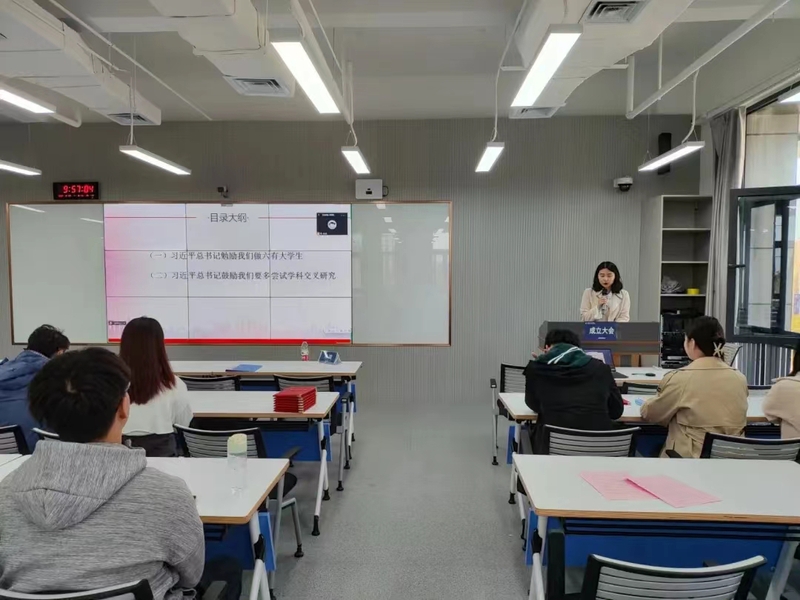 首先,李婉瑶向大家做了关于《习近平与大学生朋友们(第二卷)》第一期的学习总结,重温了习近平总书记勉励我们做六有大学生,鼓励我们要多尝试学科交叉研究的重要讲话。