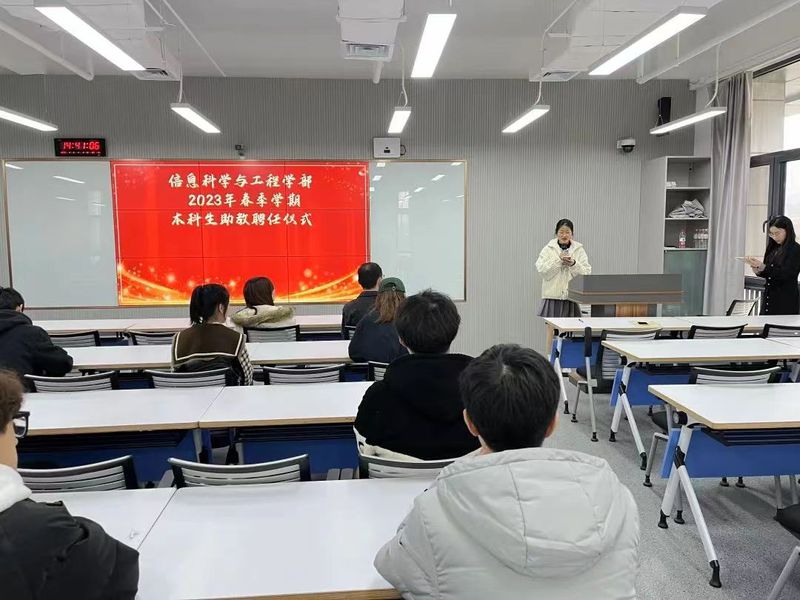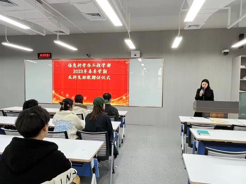 2023年4月6日,名媛直播 2023年春季学期本科生助教聘任仪式在西海岸校区信息南楼C202举行。本次聘任仪式由名媛直播 辅导员杜昆玉主持,学部团委副书记高剑宇、辅导员吴正哲和2023年春季学期本科生助教代表参加仪式。